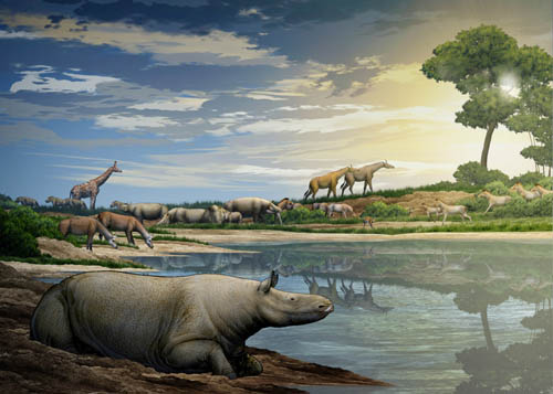 图4 桑氏大唇犀生态复原图(陈瑜绘图)