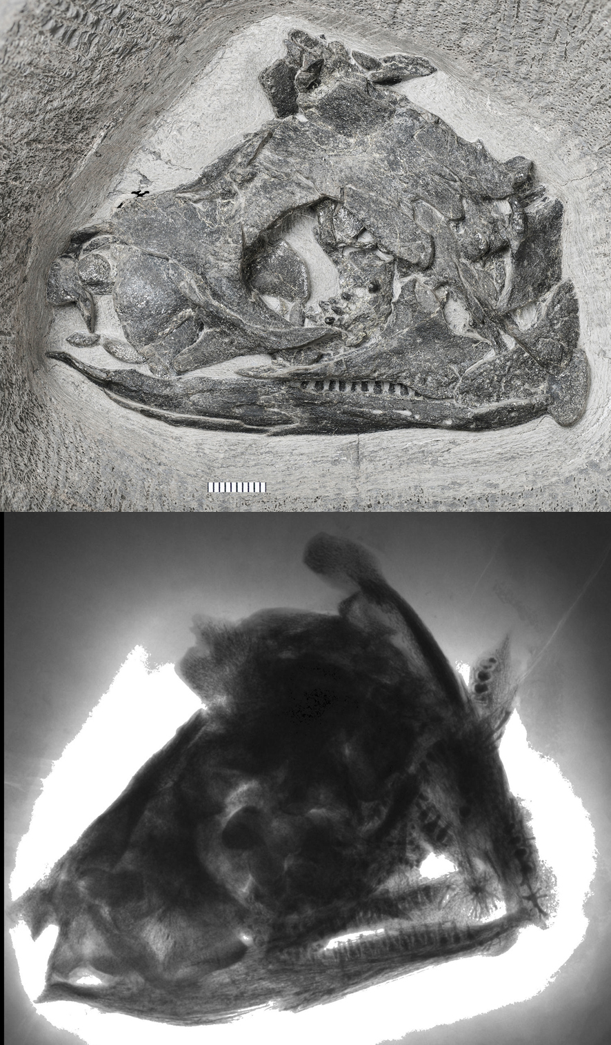 龟是人们熟悉的动物,但其演化历史却是古生物学中最大的谜题之一:它们究竟是独立起源于无孔类(眼孔后面的头骨上没有其他开孔),还是与蜥蜴、鳄鱼和恐龙(包括鸟类)等一起,从双孔类(眼孔后面的头骨上还有两对颞孔)祖先演化而来?龟的身体结构与其他四足动物截然不同。它的躯干部分很短,并且被封闭的甲壳(背甲和腹甲)所包裹,其内部骨骼,如脊椎、肋骨、肩带、腰带等不仅与甲壳相愈合,而且各自本身也有一系列特化。龟类的口中没有牙齿,而是像鸟类一样代之以角质喙。龟类与其他四足动物,包括两栖类、爬行类、鸟类和哺乳动物之间的巨大差异,无异于缆车和各种汽车的差别。问题是,龟类这些特立独行的骨骼结构究竟是一蹴而就还是逐步形成?具体过程又是怎样?人们以往认为龟类的这种身体模式是在其演化历史中“突然”产生的,此后从三叠纪末期的原腭龟(Proganochelys quenstedti)至今,在超过2亿年的时间内基本没有变化。龟类演化的早期阶段至关重要,但是长期以来化石代表稀少,尤其缺乏甲壳形成和牙齿消失的化石证据。发育生物学、分子生物学和古生物学工作者纷纷致力于龟类起源和早期演化的研究,但是成果有限,只能各说各话。直到2008年,我国学者在贵州省关岭地区发现了半甲齿龟(Odontochelys semitestacea),即一个具有牙齿和只有腹甲的龟,古生物学界才开始对龟类的早期演化有了实质性了解。十年后,2018年8月23日出版的《自然》杂志(Nature)再次报道了中国科学院古脊椎动物与古人类研究所领衔的国际合作团队在同一地区新发现的原始龟类——“中国始喙龟(Eorhynchochelys sinensis)”,这是继半甲齿龟之后关岭出现的又一种重要早期龟类化石。