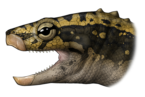 中国始喙龟(E.sinensis)头骨和生态复原(陈瑜绘)