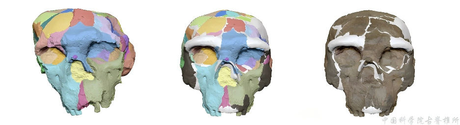 研究团队采用高精度CT扫描与结构光表面扫描技术,清晰识别出郧县人2号化石中的裂隙、矿物填充和未变形的骨片,随后通过创新的数字重建方法,根据解剖结构和几何形态学标志点,以虚拟方式完成了头骨的精细拼接。此外,研究团队还开发出一套新型统计方案以检验重建结果的可靠性——这是古生物学中长期存在却难以验证的关键问题。通过随机引入误差进行了上万次模拟,结果显示,郧县人2号在系统发育树中的位置始终稳定。